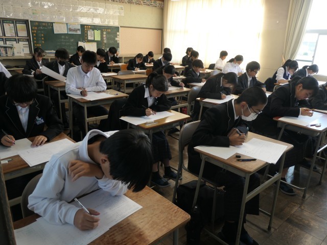 今日から期末テストです。今日は、英語・国語・技術・家庭科のテスト行いました。月曜日は、理科・社会・美術のテストがあります。実力が発揮できるようにしっかり取り組みましょう。
