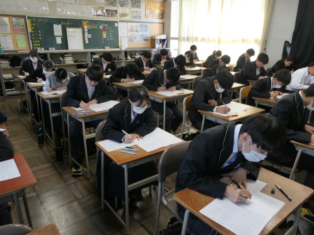 今日は、期末テスト1日目でした。国語・英語・保体のテストを行いました。今日の4時間目は、入試や社会に出たときにプラスになるように「マナー講座」も予定されています。自分の進路に向けて頑張っていきましょう。