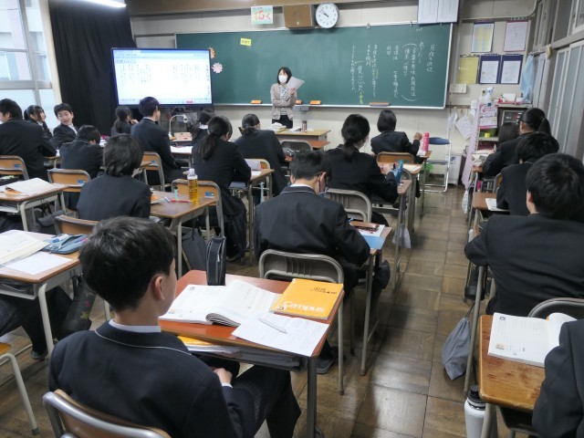今日の国語の時間は、中原中也作の「月夜の浜辺」について学習していました。表現技法や情景・心情などを詳しく学びながら読み味わっていました。