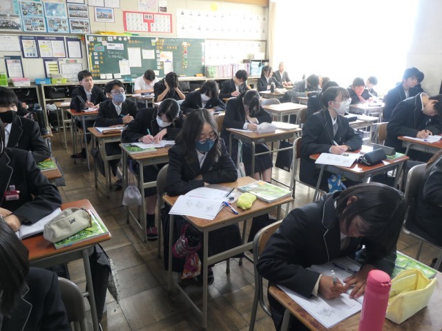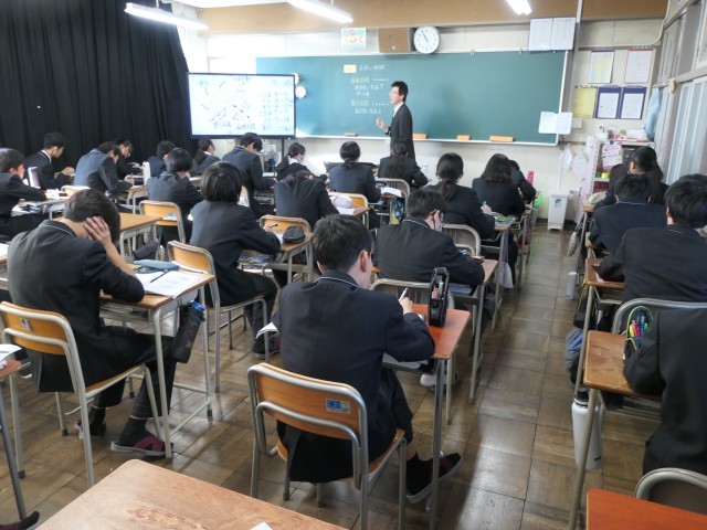 今日の理科の時間は、前線について学習していました。温暖前線・寒冷前線などの特徴を天気図を使って詳しく解説をしていました。