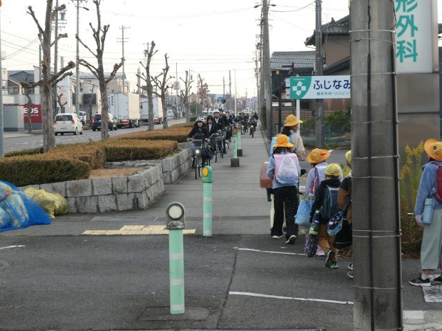 今朝は、地域の方々が通学路に立って交通安全の見守りをしていただいていました。ありがとうございました。