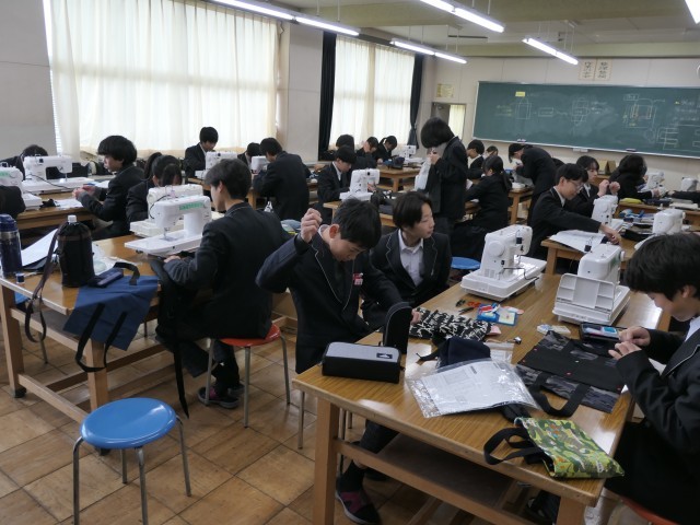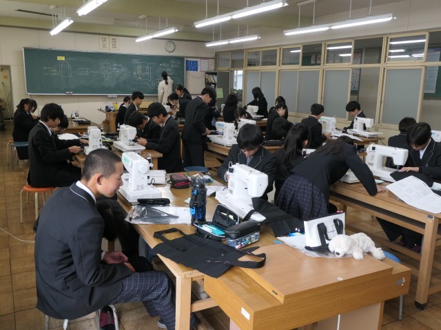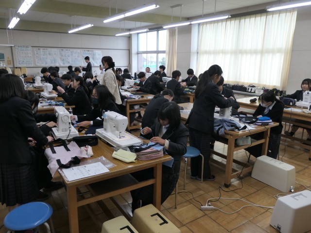 今日の家庭科の時間は、ミニトートバックの制作を進めていました。持ち手をつけたり底布を縫い付けたりしていました。完成が楽しみです。
