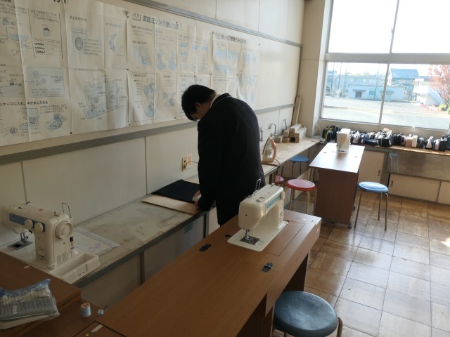 今日の家庭科の時間は、アニマルボトルカバーとランチョンマットの制作をしていました。ランチョンマットの布にアイロンをかけたり、寸法を測ったりしていました。