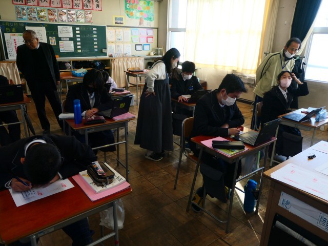今日の国語の時間は、年賀状書きの練習をしました。住所の書き方や文章の書き方を練習していました。イラストも入れて作成していました。