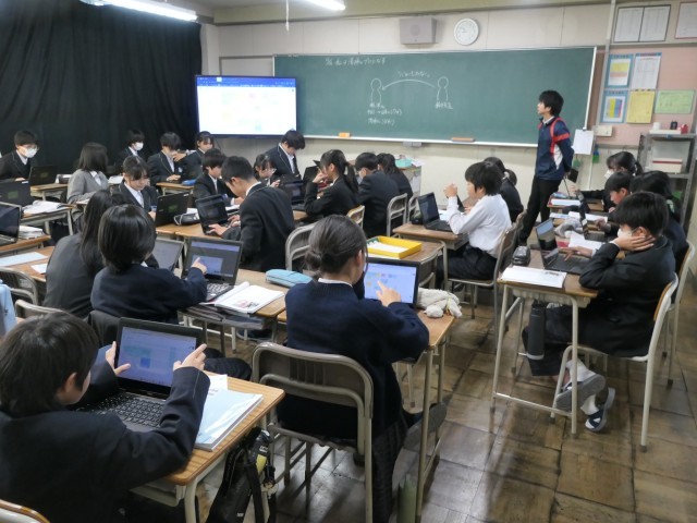 今日の道徳の時間は、教科書の「私は清掃のプロになる」のお話を通して、心を込めて仕事をするということはどういうことかを考えていました。タブレットパソコンを使って、自分の考えを友達と共有しながら授業を進めていました。