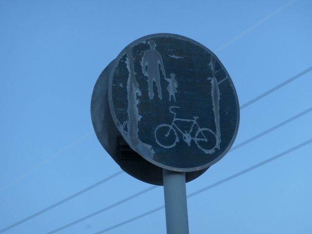 通学路にあった普通自転車歩道通行可の標識も写真で載せます。皆さん覚えておいてください。(結構薄くなっていましたが)