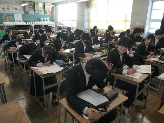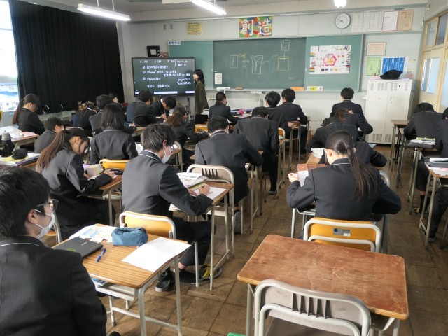 今日の美術の時間は、これまで制作してきたパッケージデザインの鑑賞を行っていました。工夫してきた点などを学習カードにまとめてから鑑賞をしていました。
