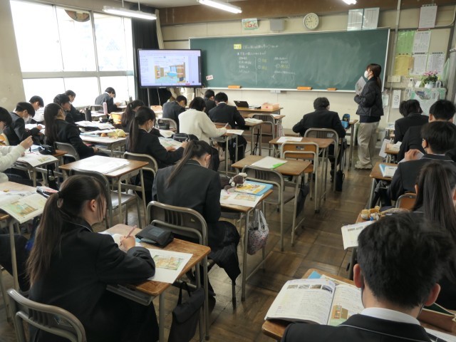 今日の家庭科の時間は、各家庭できる災害への備えや対策を考えていました。来るかもしれない大災害に向けてどんな準備ができるのかを一人一人考えていました。
