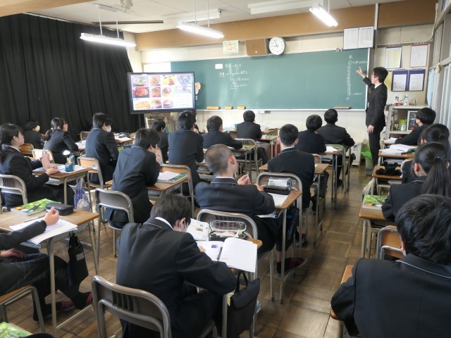 今日の理科の時間は、熱量の表し方について学習していました。食べ物が持つカロリーを例に挙げながら、熱量について解説していました。