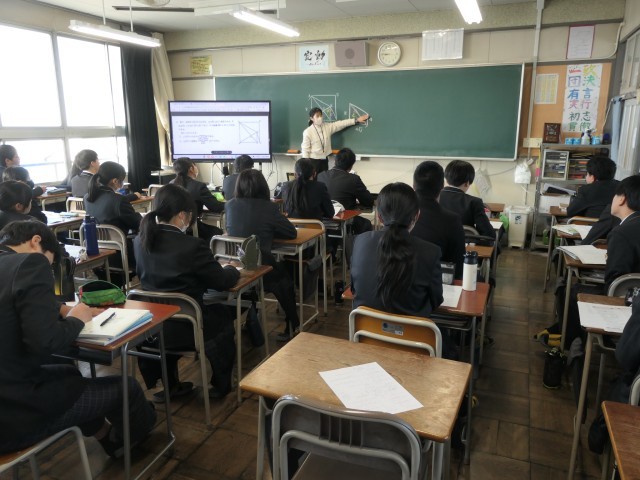 今日の数学の時間は、入試によく出る問題を解説していました。問題を解くためのポイントを分かりやすく解説していました。