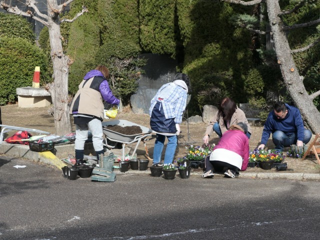 本校では、地域ボランティアの「フルール」さんに校内の花の手入れをしていただいています。毎年この時期に、卒業式を花いっぱいの環境で迎えられるように花の植え替え等をしていただいています。今日も寒い中、学校に来ていただいて活動をしていただきました。大中生の皆さんは、この大和中学校は地域に支えられている学校だということを忘れないでください。