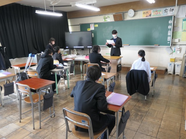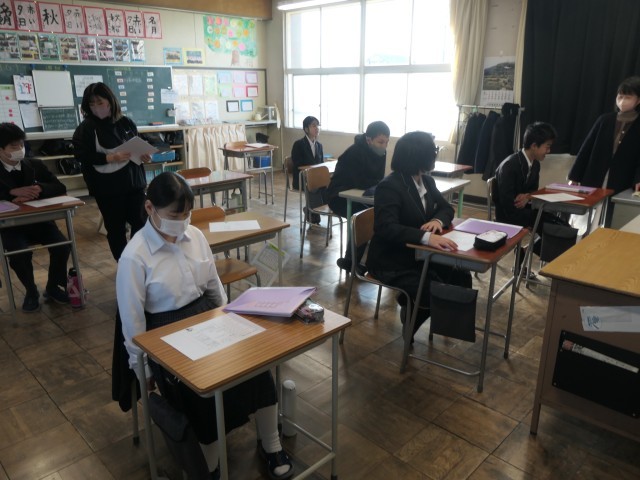今日は、学年末テストの発表の日です。先生からプリントを使って丁寧に説明をしてもらっていました。テストに向けて、しっかり勉強を進めましょう。