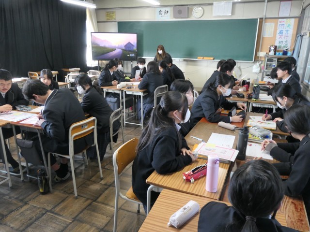 今日の国語の時間は、桃太郎の場面で、違った展開を考え、それにあったストーリーを作っていました。グループで話し合いながら、展開ごとに違ったストーリーを考えていました。