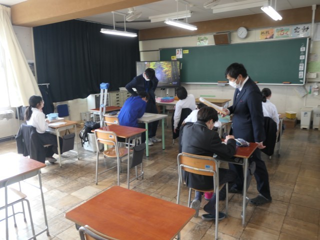 今日の社会科の時間は、プリントを使ってテストに向けた学習を進めていました。個別に分からないところを教えてもらいながら学習を進めていました。