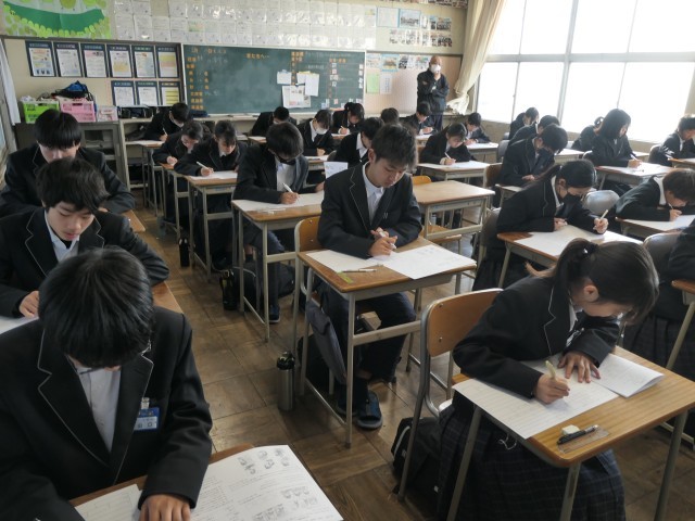 今日から学年末テストです。今日は、英語・国語・保体のテストを行いました。明日は、数学・社会・技家のテストがあります。ベストを尽くして頑張ってください。
