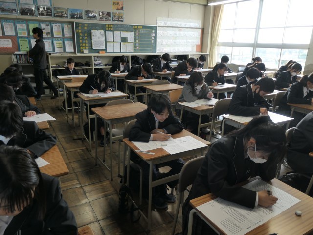 今日は、学年末テスト最終日でした。理科・美術・音楽のテストがありました。今日でテストが終わります。テストが返却されてからの直しが大切ですね。