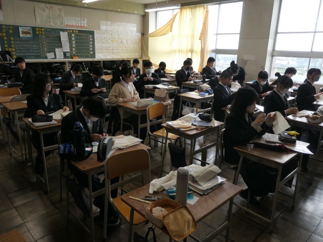 今日の家庭科の時間は、裁縫の練習とテストを行っていました。集中して与えられた課題に取り組んでいました。