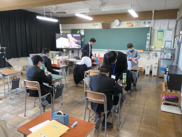 今日の理科の時間は、空気を振動させて的を倒す「空気砲」を作りました。的も自作をして倒していました。