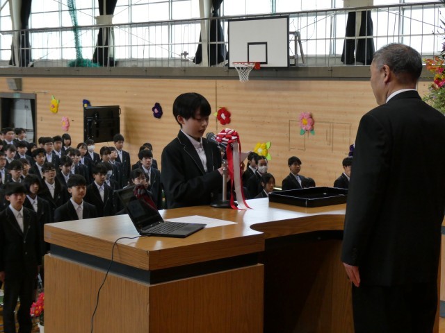 新入生198名の皆さん、ご入学おめでとうございます。 教職員、在校生一同、皆さんを心より歓迎いたします。 本校の北側には桜の花と新芽が混じり、生命の力強さを感じる季節となりました。 皆さんが通う大和中学校は、今年で創立80周年を迎える歴史ある学校です。 中学校生活は心身ともに大きく成長し、将来の夢を実現するための礎を築く大切な時期となります。 新たな生活を始める皆さんに、実行してほしい二つのことをお話しします。