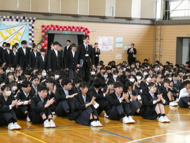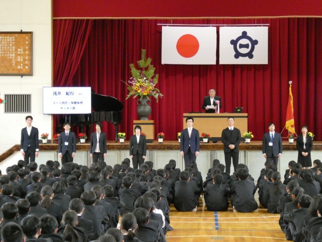 生徒が互いに認め合い、高め合うことで飛躍の年となるよう、職員一同が全力でサポートする。