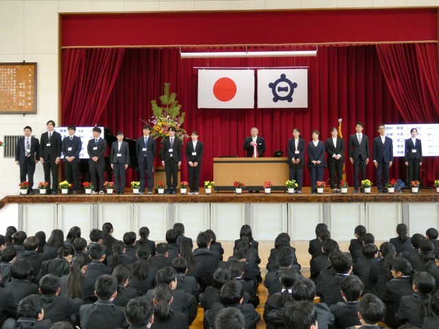 新任式では、新しく大和中学校に赴任された15名の先生方を紹介しました。