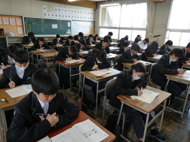 今日は、昨日に続いて標準学力検査を行いました。1年生で学んだことがどれくらい身についているか確認するテストです。結果を見て、これからの学習計画に活かしていくといいですね。