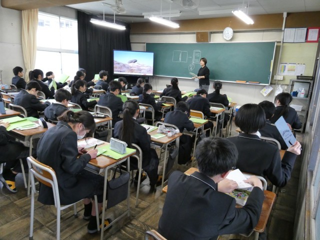 今日の英語の時間は、中学校に入学して初めての英語の授業でした。先生が英語で指示をしたり問いかけたりしていたので、生徒たちは、少し驚いていました。