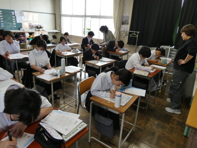 今日の英語の時間は、最初に単語や文を話す練習をした後で、単語やアルファベットの練習を自分のめあてに合わせて行っていました。楽しく英語に取り組んでいました。