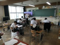 今日の体育の時間は、バドミントンを行いました。ラリーが続くようにペアを組んで練習をしていました。基本の練習をしている生徒もいました。