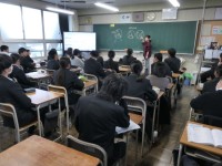 今日の女子の体育の時間は、柔道の授業を行っていました。柔道の礼儀作法や柔道着の着方、簡単な後ろ受け身の練習をしていました。頭を打たないように気を付けて練習をしていました。