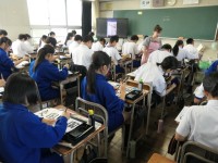 代表生徒に修了証を渡した後で、一宮市教育委員会から証書ホルダーをPTAからはクリアファイルを授与してもらいました。