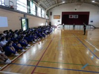 今日は、屋内運動場で学年競争種目の練習をしていました。学年全体で動きの確認や競...