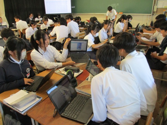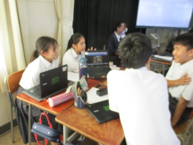 自分が惑星のひとつになったつもりで、温度や地表の様子などを紹介するPRスライドを作り、班内で発表しました。