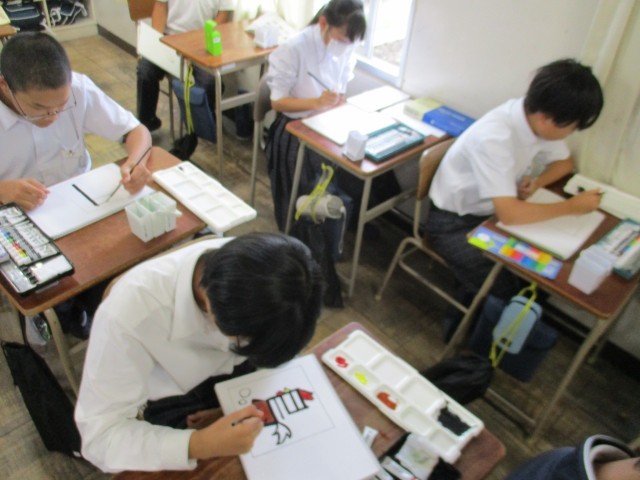 美術では、文字の一部を絵にかえた作品を制作しています。