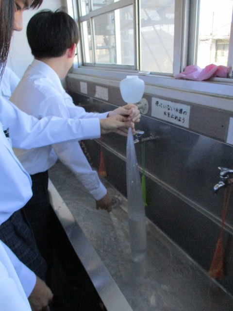 理科では、水圧について学習しています。