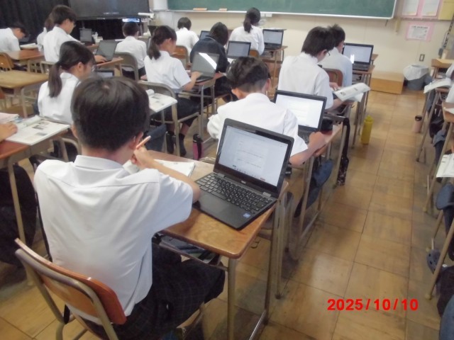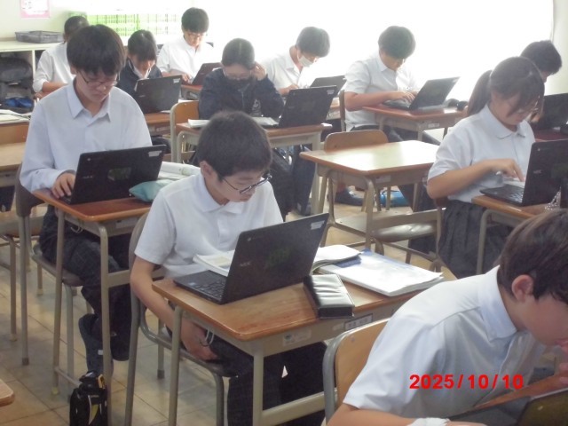 社会科の授業では、単元テストを行い、ヨーロッパ州について、教科書やノートを用いて問いに答えました。