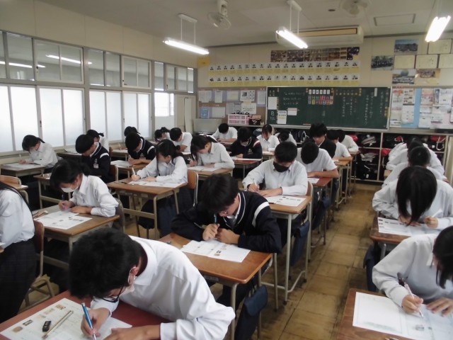 1時間目は美術、2時間目は音楽でした。どの顔も真剣そのものです。3年生、頑張れ!!