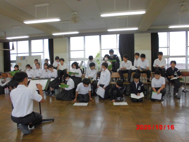 10月16日 合唱練習の様子(1年生)