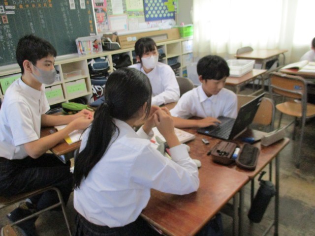 英語では、「3ヒントクイズ」をグループでつくっていました。