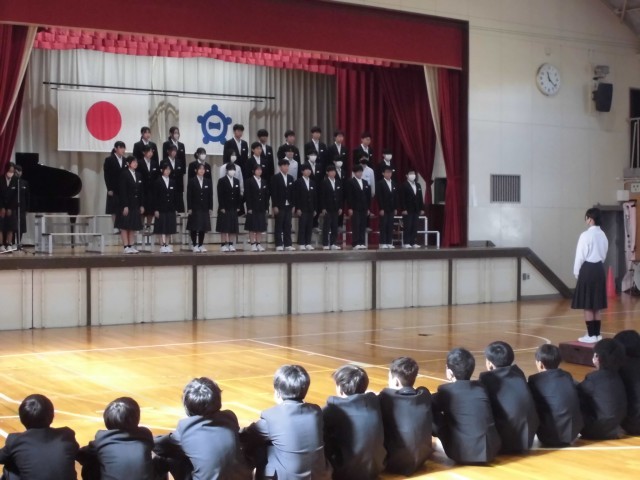 本日の3~4時間目にかけて合唱コンクールの学年リハーサルが行われました。緊張しながらも各クラスがこれまでの練習の成果を発揮するために、真剣に取り組む姿がありました。合唱コンクールまであと4日です。学年リハーサルで感じたことを生かし、残り少ない練習時間ですが、最高の合唱になるように取り組んでいきましょう。