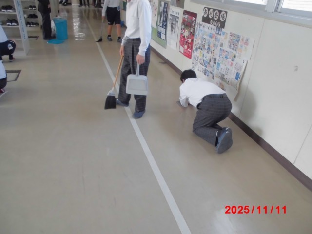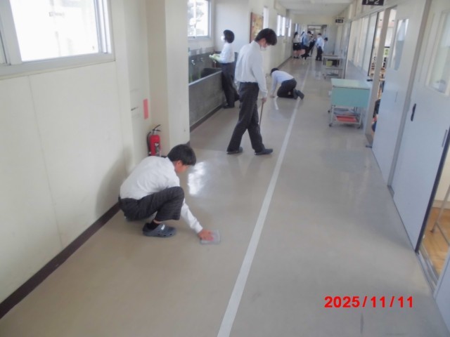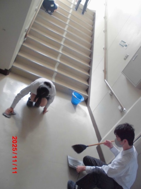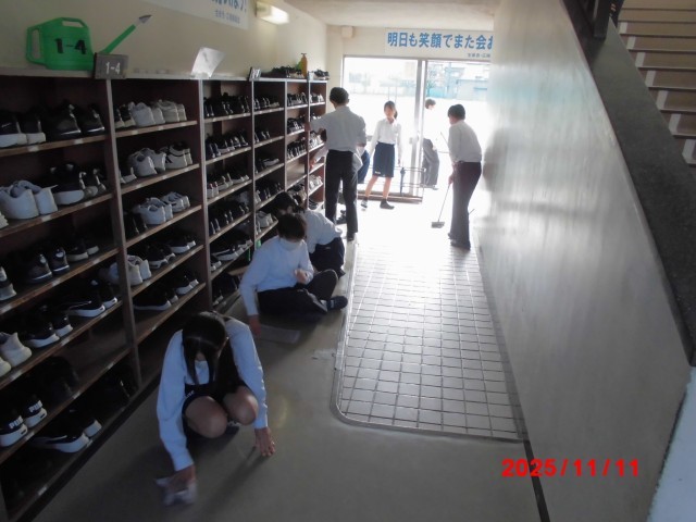 テスト本番まであと3日となりました。冷たい風が吹くようになり、水も冷たくなってきておりますが、水ぶきを黙々と一生懸命に行う姿が、たくさん見られました。