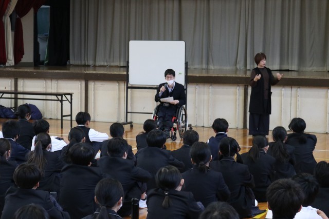1年生は本日、福祉実践教室を行いました。「共に生きる」「みんなが幸せに生きる」を目指し、中学生としてどう働きかけたり、どういう心持でいたりしたらよいかを考える機会となりました。