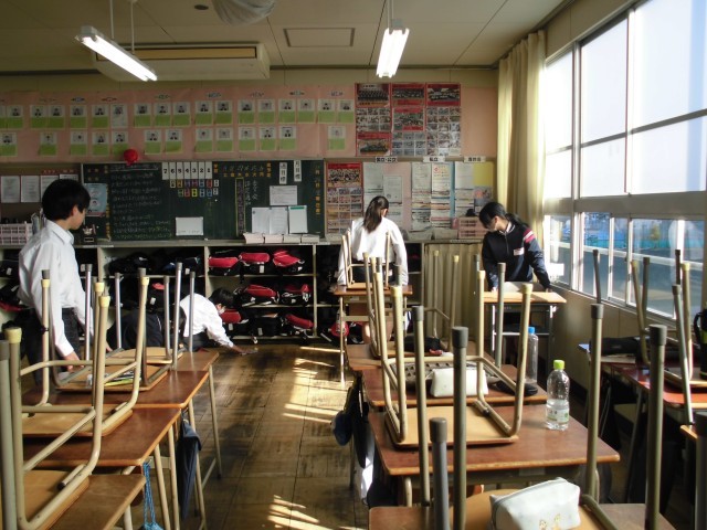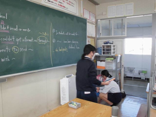 掃除の様子です。15分の短い時間の中、細かい所まで丁寧に行うことができています。掃除で学習環境を整え、目標に向けてみんなで頑張っていきましょう。