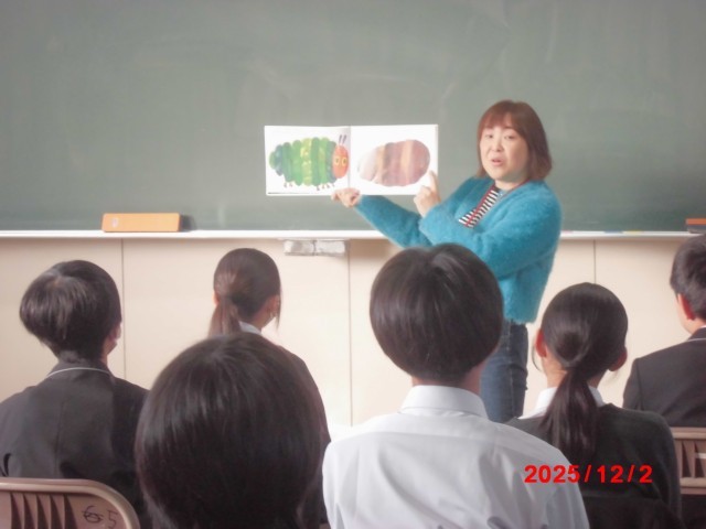 今年度4回目の読み聞かせ会でした。『はらぺこあおむし』を全編英語でお話された学級では、みんな真剣に絵と英語を聞き比べて、お話の世界に入り込んでいました。毎日少しずつ読書することは、単語も熟語も文法も知らないうちに覚え、良いことがたくさんあることも教えていただきました。