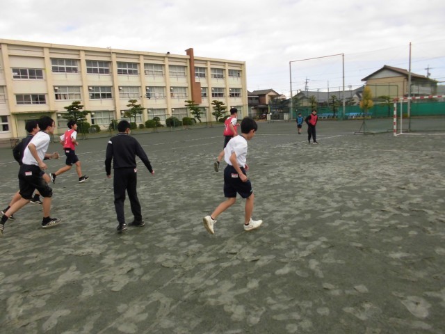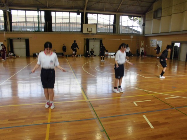 本日の体育の授業の様子です。男子はサッカーで試合形式のミニゲームを、女子は縄跳びの計測をしました。寒い中ですが、楽しそうに体を動かす姿が見られました。