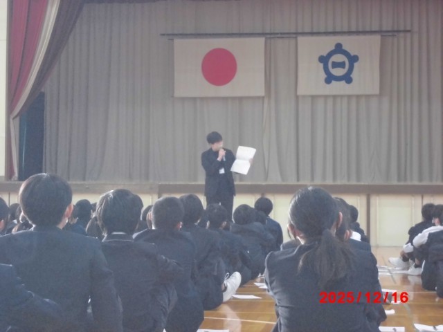12月16日 学年集会の様子(1年生)