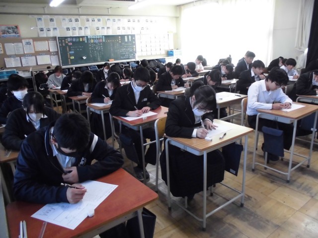 2年生は、理科と数学の平常テストを行いました。放課中にテキストを開き、友達と勉強する姿など、日頃の勉強を積み重ねが大切なテストです。短い時間ですが集中して取り組むことができました。
