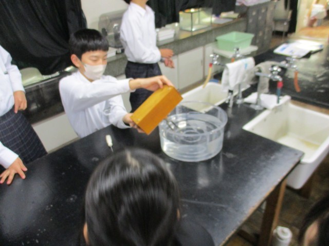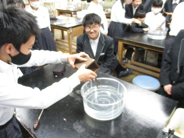 1月19日 授業の様子(1年生) 公開日 2026/01/19 更新日 2026/01/19 1年生 理科では、今日から「音の性質」についての学習が始まりました。音を出したおんさを水槽の水につけるとどのような変化が起こるか観察しました。