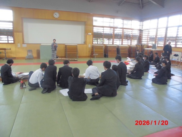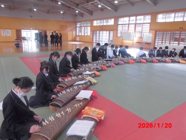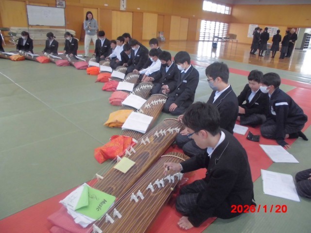 本日、音楽DAY2日目です。1年生の3クラスが琴や尺八に触れ、本物の音を感じることができました。
