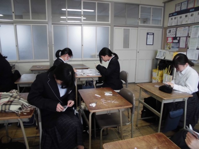 本日は、実行委員の生徒が三年生を送る会の準備を行いました。出し物の実行委員は、案を出し合ってクロームブックに入力したり、装飾の実行委員は、黙々と画用紙を切り貼りしたりする姿が見られました。少しずつ形になってきています。お世話になった3年生の先輩方に喜んでもらえるように、頑張っていきましょう。
